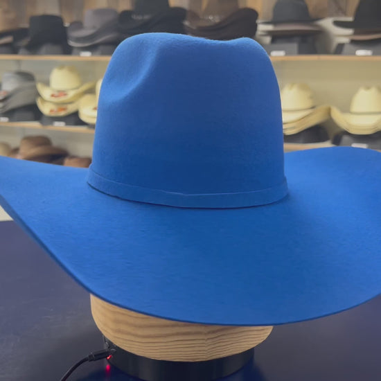 This Blue Cashmere Bull Riders hat blends classic Western style with luxurious comfort, crafted from premium cashmere for a soft, refined feel. Designed specifically for cowboys who embody both rugged tradition and modern sophistication, this hat offers durability and an elevated look. Its expert craftsmanship ensures it stands up to the demands of bull riding while enhancing your GQ swagger with a bold, blue statement. Perfect for those who want to roll with confidence and style.