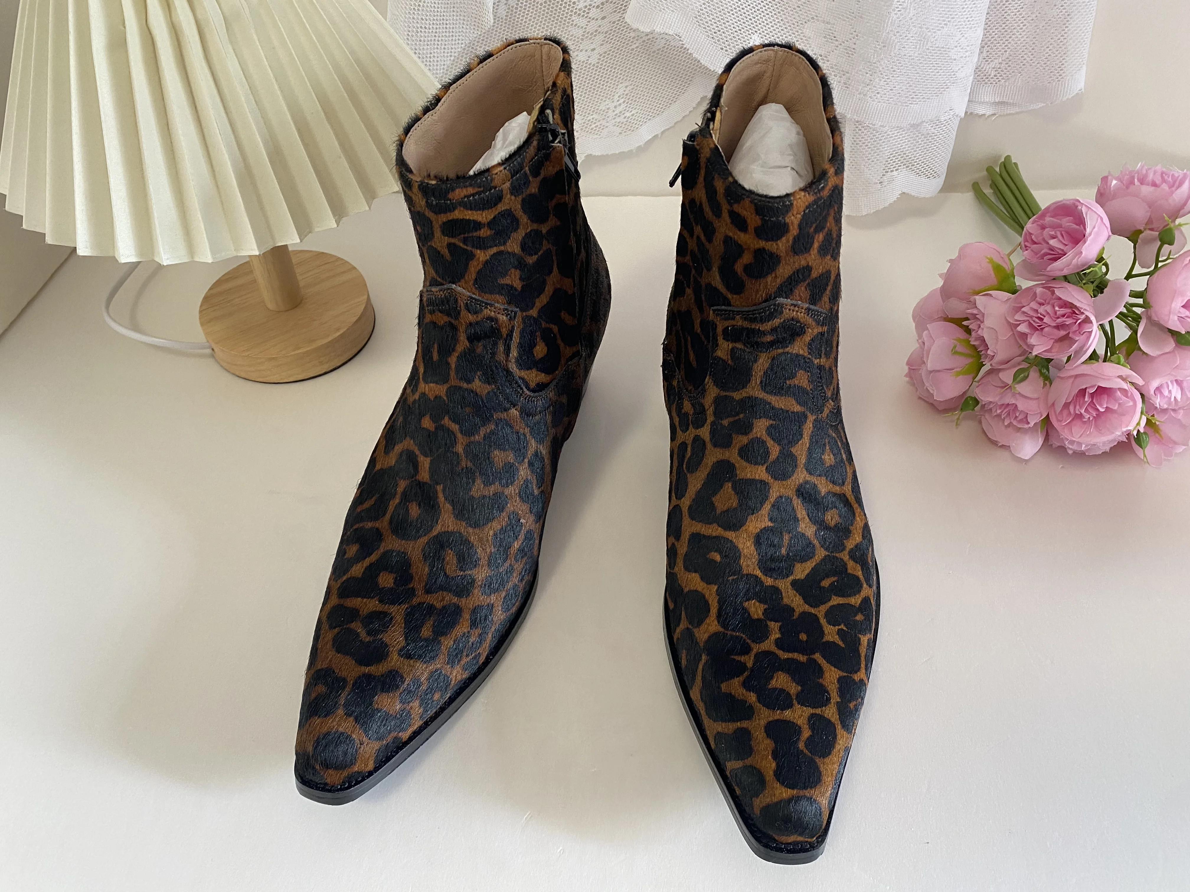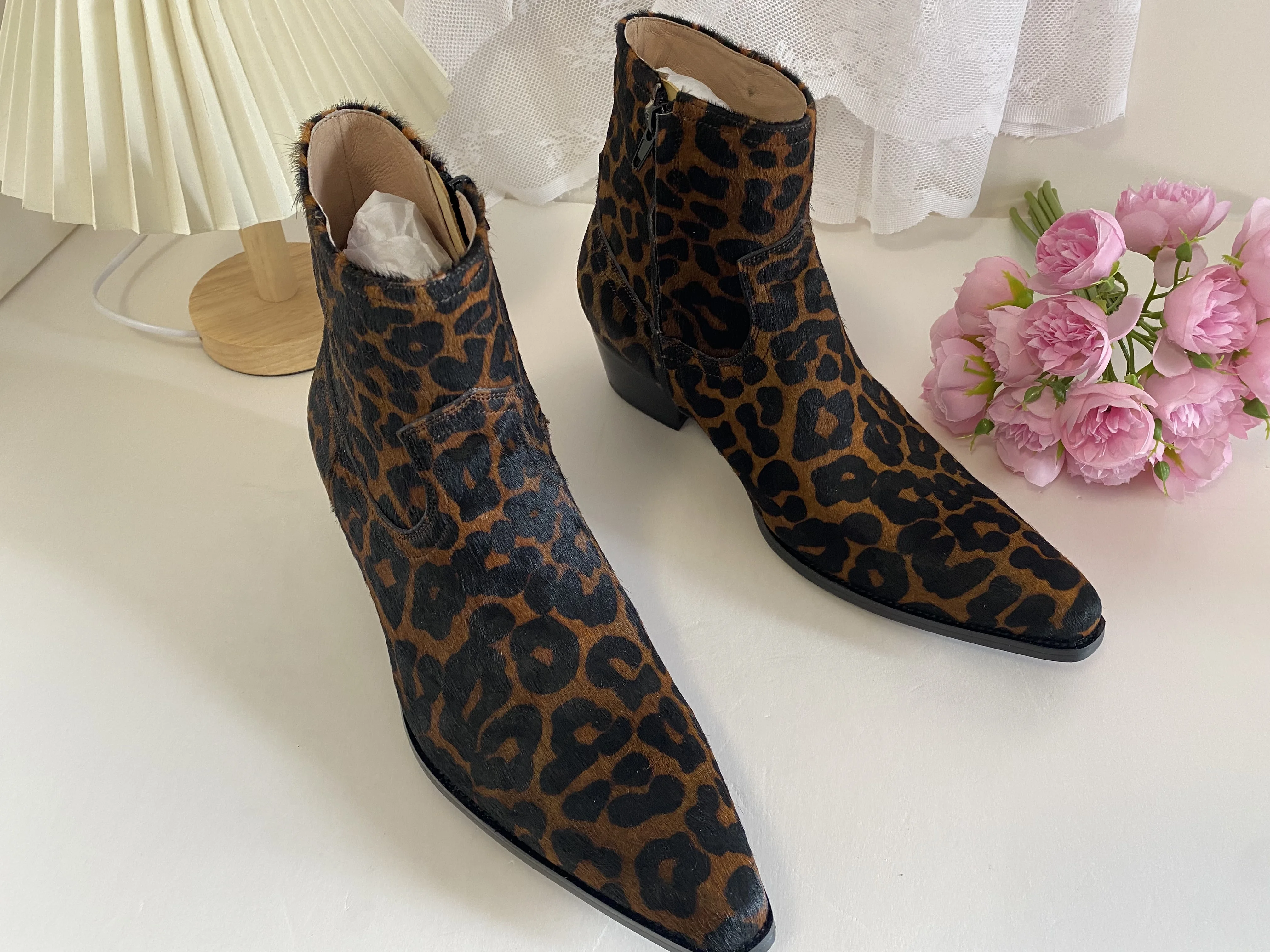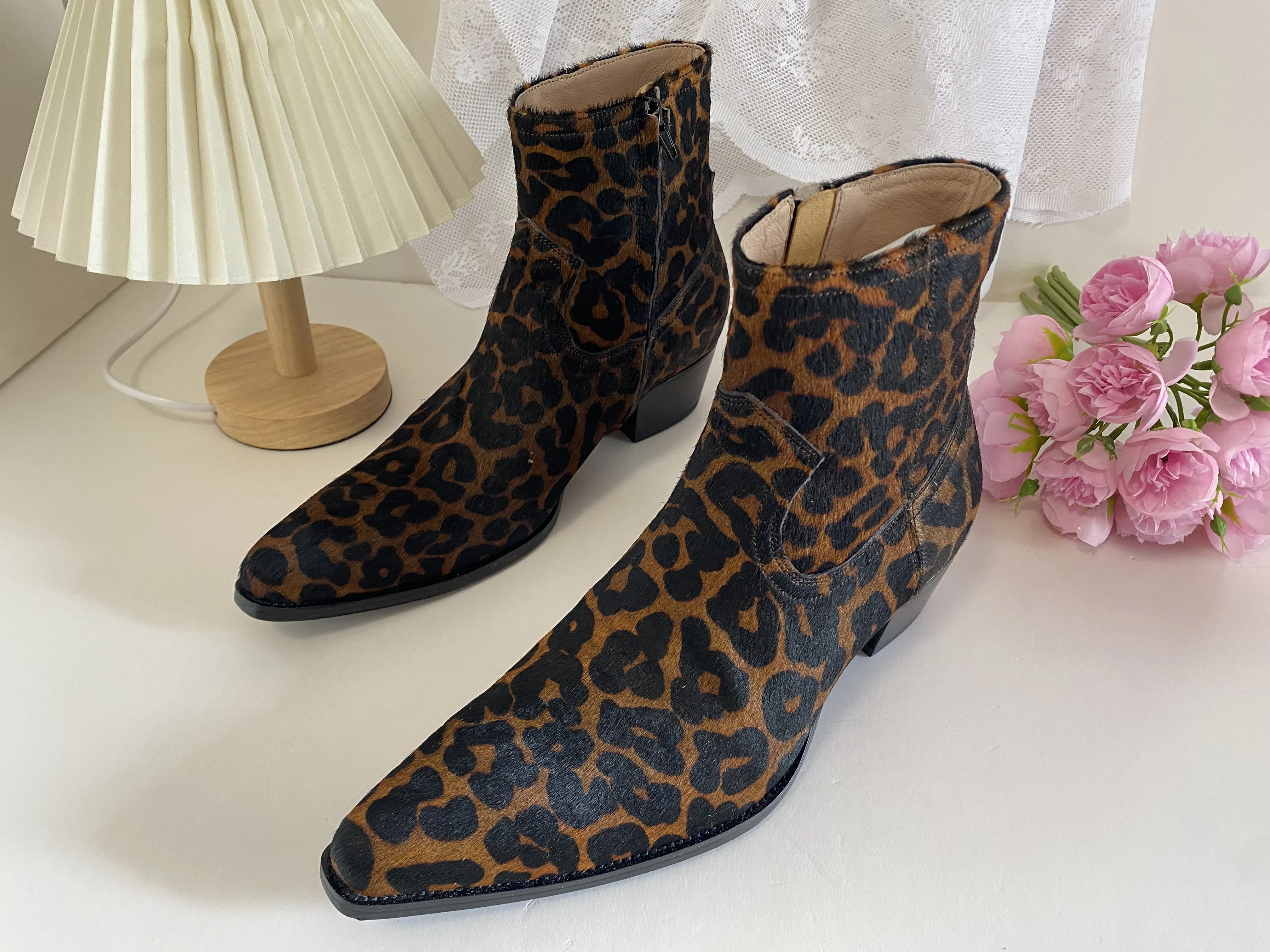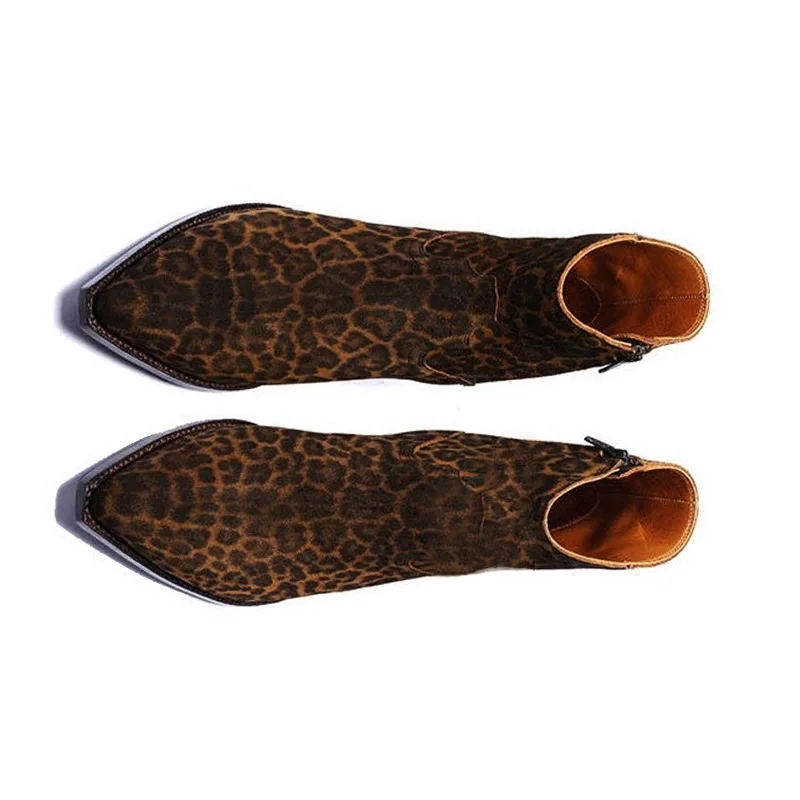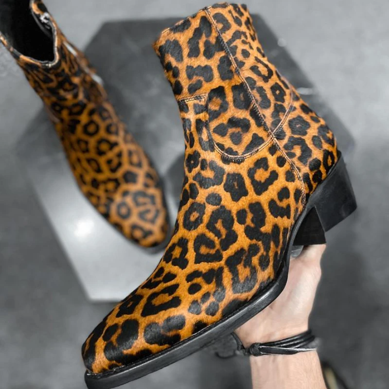 Western GQ Style Leopard Printed Genuine Leather Men's Ankle Boots